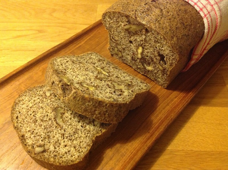 Valnötsbröd Så här gör du Sätt ugnen på 175° Klä en brödform på cirka 2 liter med bakplåtspapper Kör linfröna i en kraftig mixer…