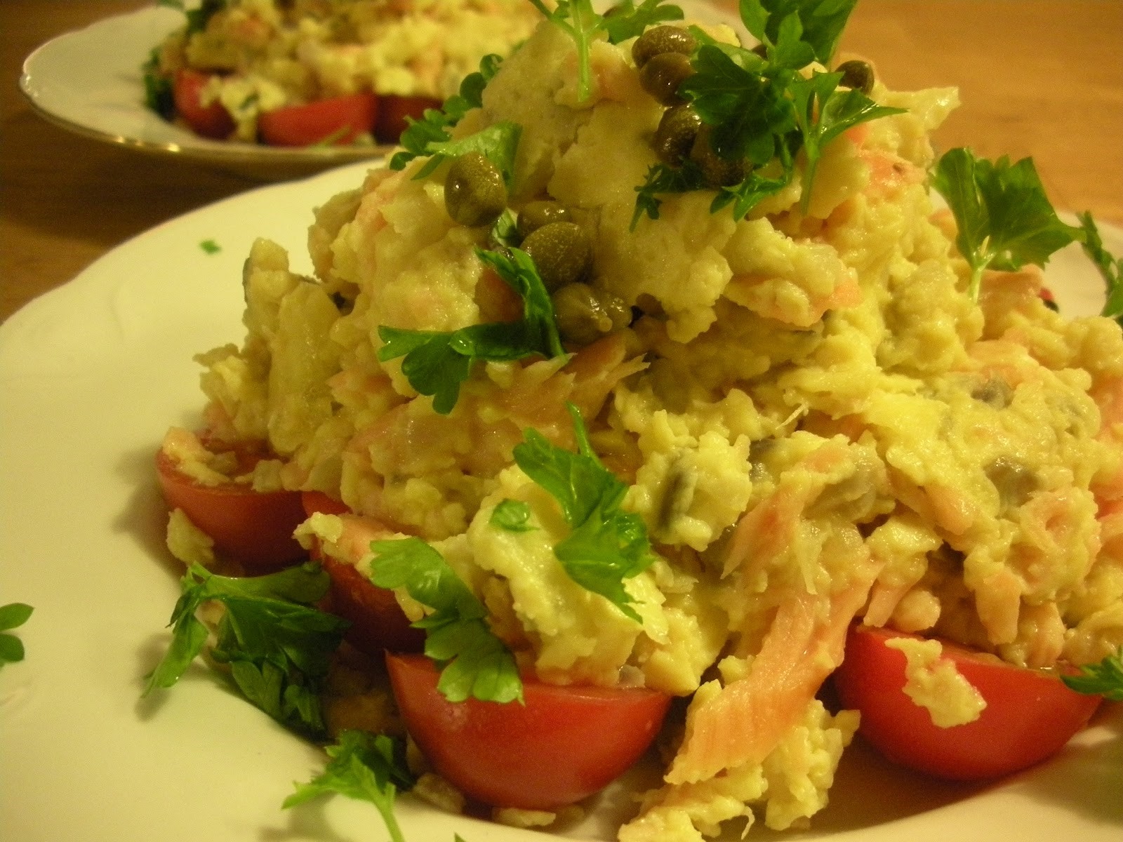 Äggröra med rökt lax och kapris Så här gör du Hacka rödlöken och bryn den mjuk i en stekpanna tillsammans med kokosoljan Vispa lätt…