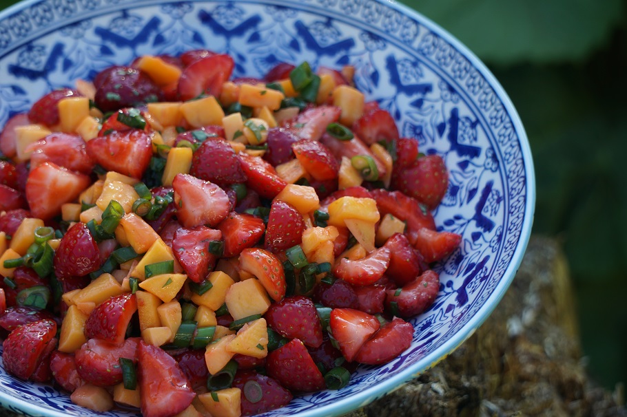 Servera en somrig Jordgubbssalsa till det grillade köttet, fisken, kycklingen eller grönsakerna. Så fräscht och gott! Passar perfekt på buffébordet i sommar.