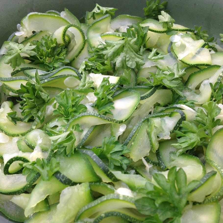 Squashpasta Så här gör du Tvätta squashen Svarva den i grönsakssvarven eller skär långa remsor med hjälp av en potatisskalare Koka upp en kastrull…