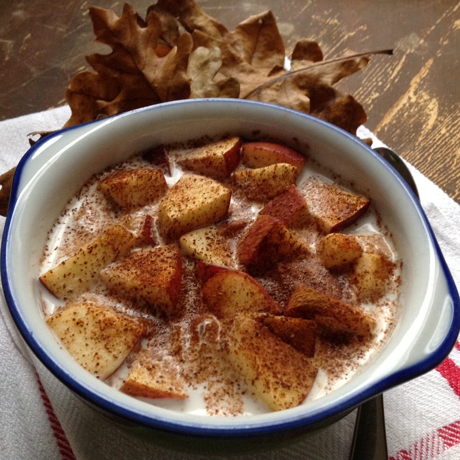 Äpple med varm kokosmjölk Så här gör du Ställ ugnen på 150 grader Skär upp äpplet i kuber och lägg i en liten skål…