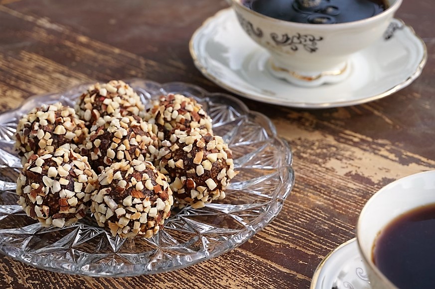 Äpplekaksbollar Så här gör du Torr rosta den finhackade mandeln tills den blir lätt gyllene brun i en stekpanna Häll upp mandeln på en tallrik…