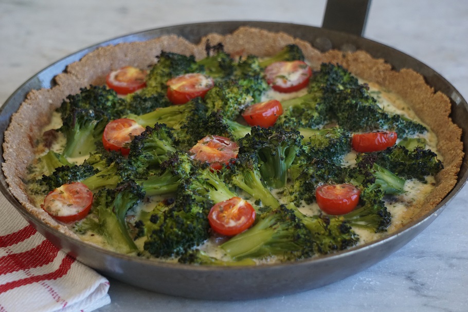 Broccolipaj En matig och god paj med många härliga smaker! Så här gör du Pajdeg Sätt ugnen på 175 grader Mixa mandelmjöl och skalade sesamfrön…