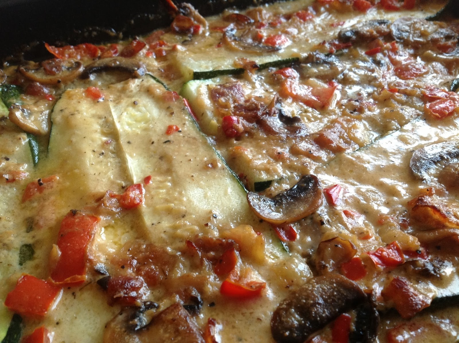 Squashgratäng med bacon och champinjoner Så här gör du Det är viktigt att du vattnar ur squashen ordentligt innan du använder den i gratängen…