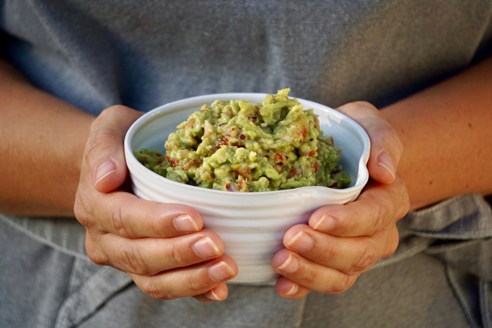 Guacamole Så här gör du Skala, dela och finhacka rödlöken Dela, kärna ur och skär tomaten i småbitar Finhacka chili Dela avokadon, ta bort…