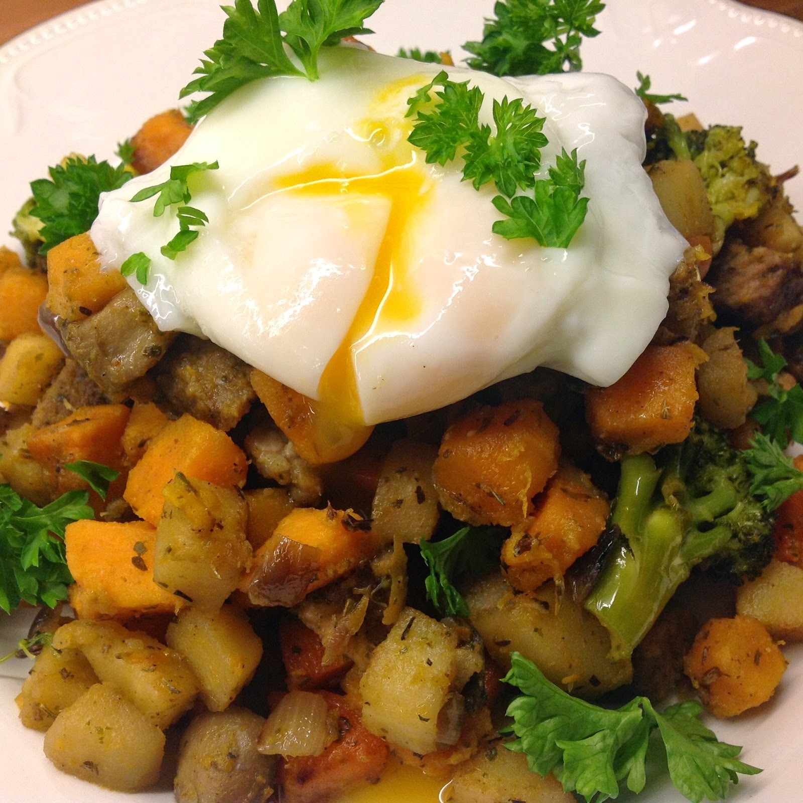 Pyttipanna Paleostyle Så här gör du Skala och tärna rödlöken, sötpotatisen, palsternackorna och morötterna i önskad storlek Dela champinjonerna och broccolin i mindre bitar…