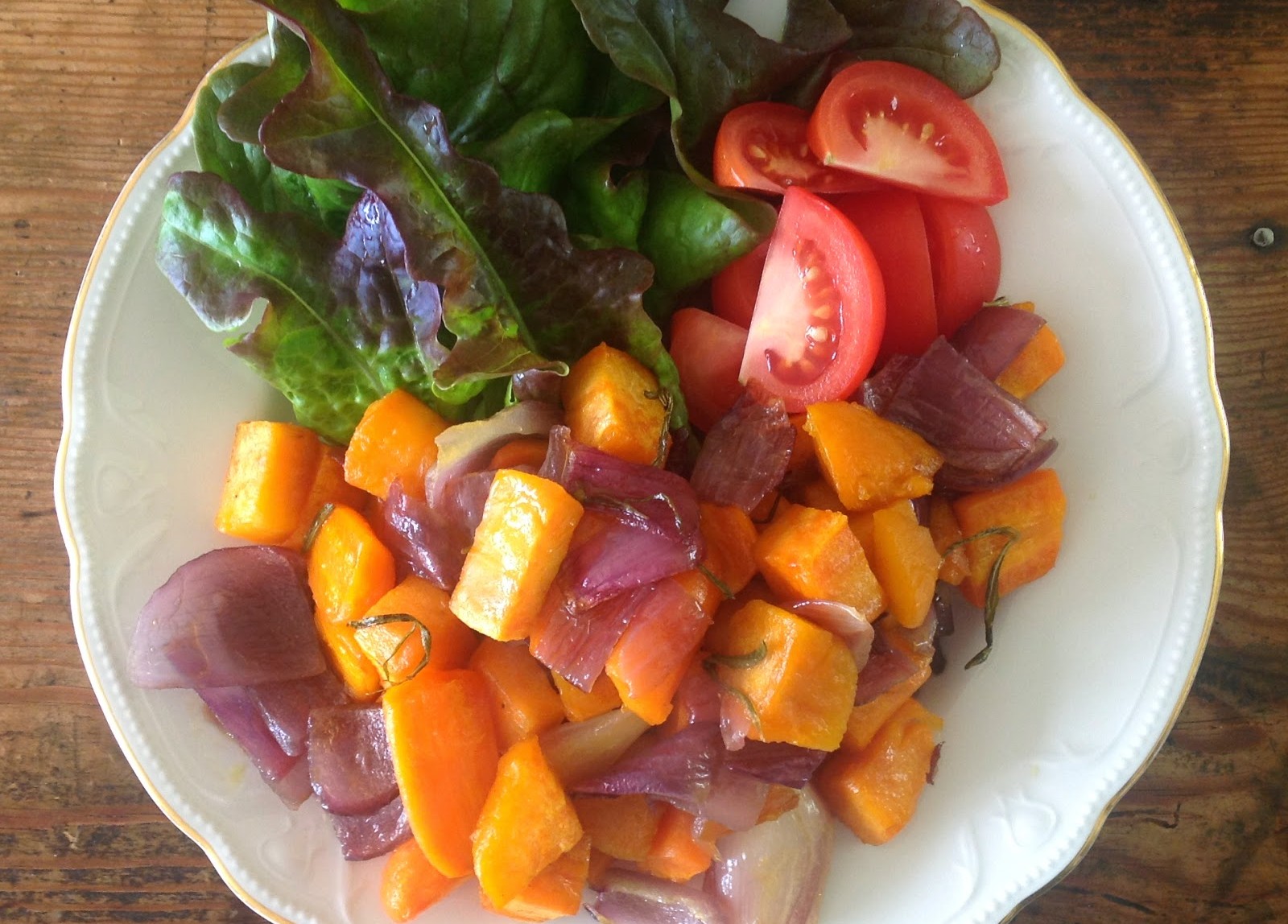Vegetarisk tallrik Så här gör du Sätt ugnen på 175 grader Skala sötpotatisen, morötterna och löken Skär upp sötpotatisen, morötterna och löken i ungefär…