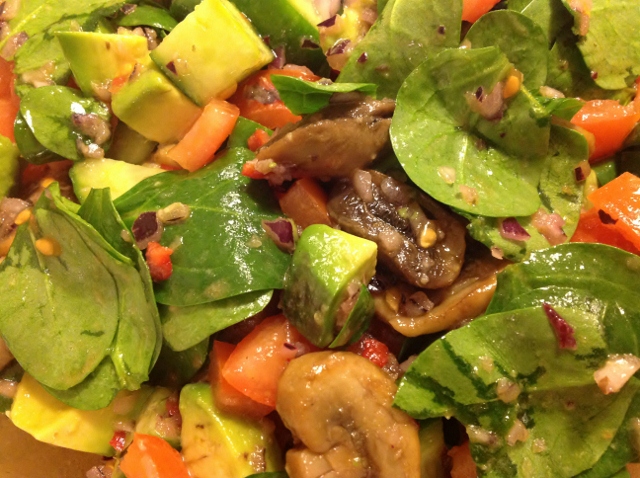 TillbakaChampinjon och avokadosallad med smak av vitlök och chili