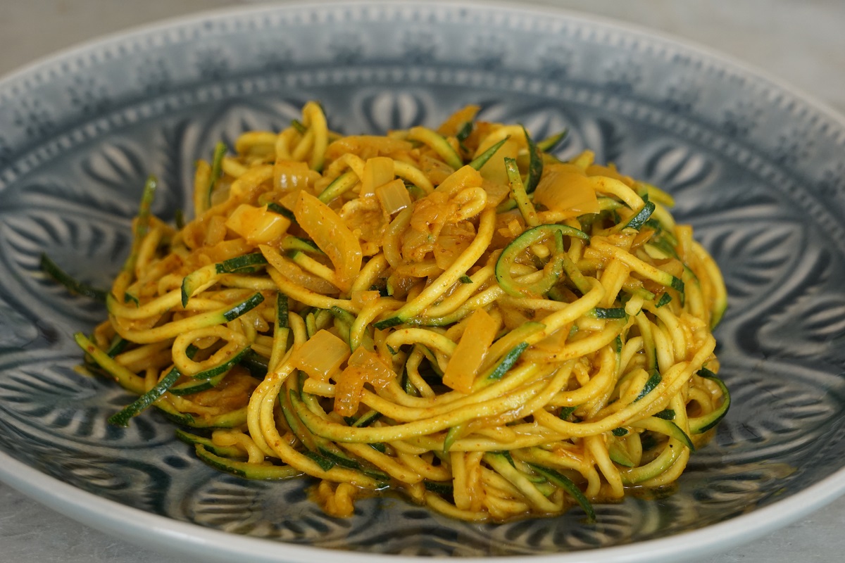 Currykryddade Zucchininudlar Zucchininudlar är något vi börjat äta ofta här hemma till olika rätter som t.ex. köttfärssås, goda grytor och grillat, då oftast bara upphettade…